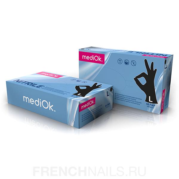 Перчатки нитриловые, MEDIOK черные, L, 50пар в упаковке