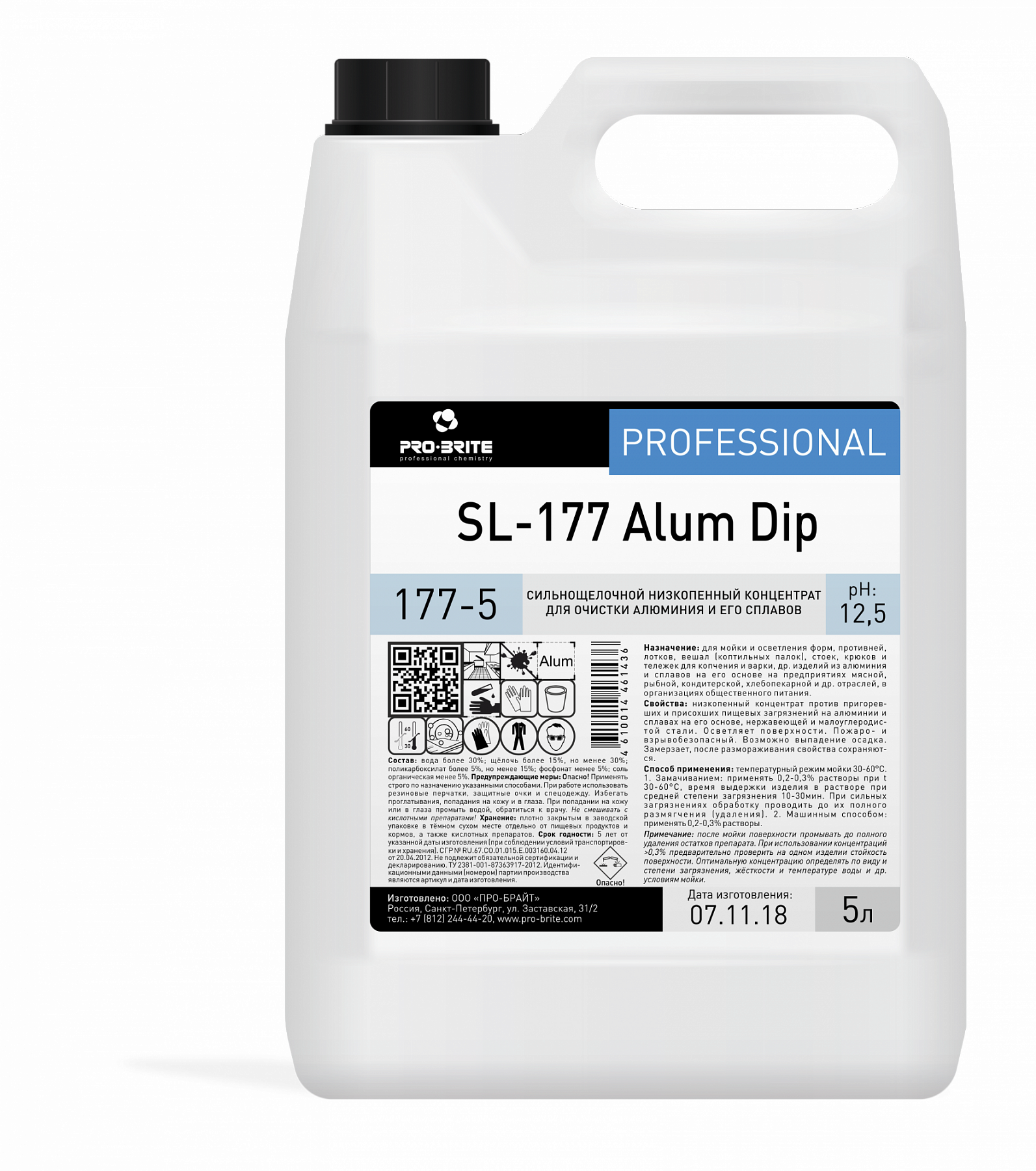 Pro-Вrite: Alum Dip SL-177 5л/4штСильнощелочной низкопенный конц-ат д/очистки алюминия и его сплавов
