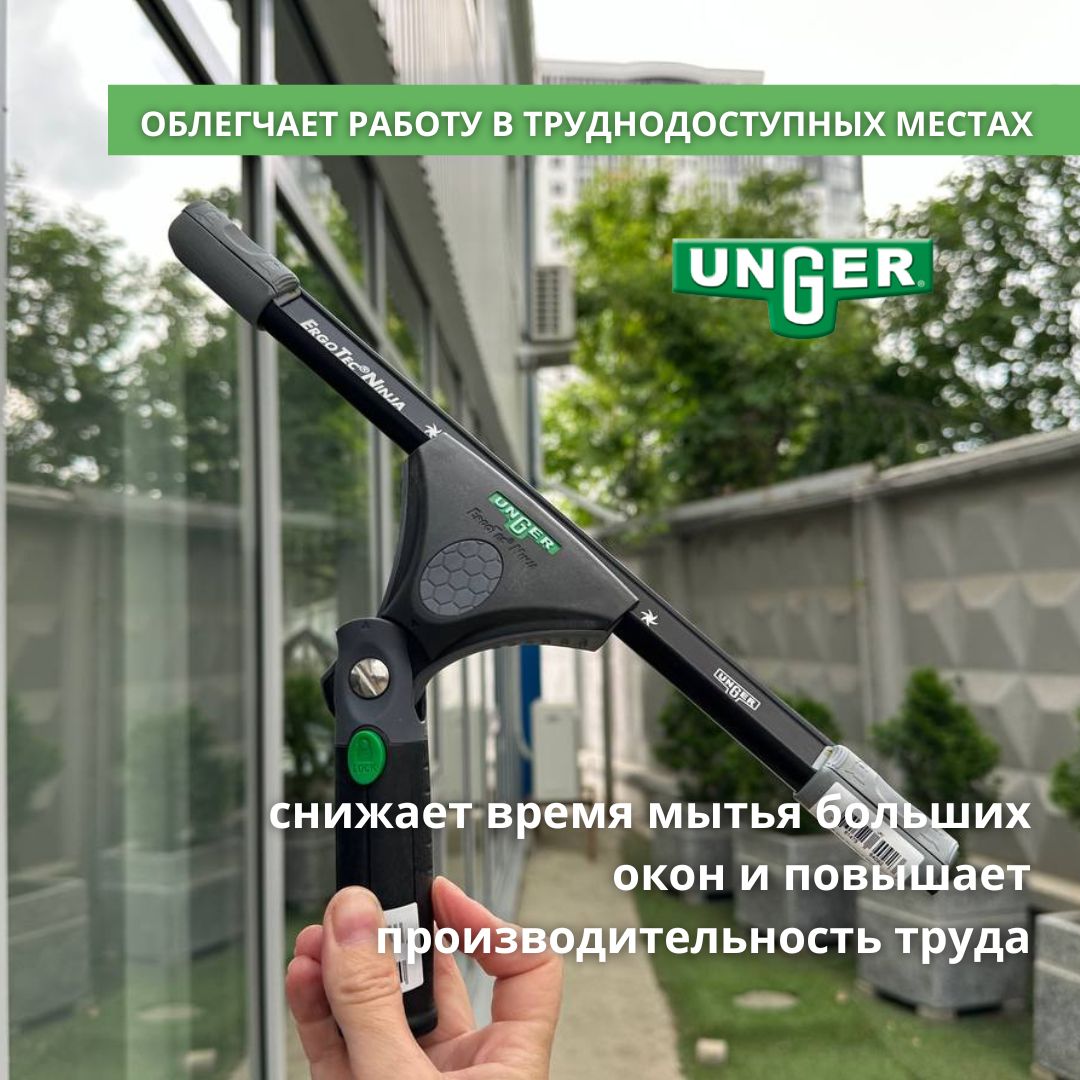Держатель надежно фиксируется на телескопических штангах Unger.